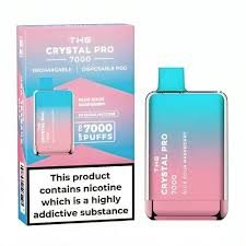 “Discover the Crystal Pro 7000 disposable vape, offering up to 7000 puffs, a rechargeable battery, and a wide range of flavors. Perfect for convenience and performance in vaping.”